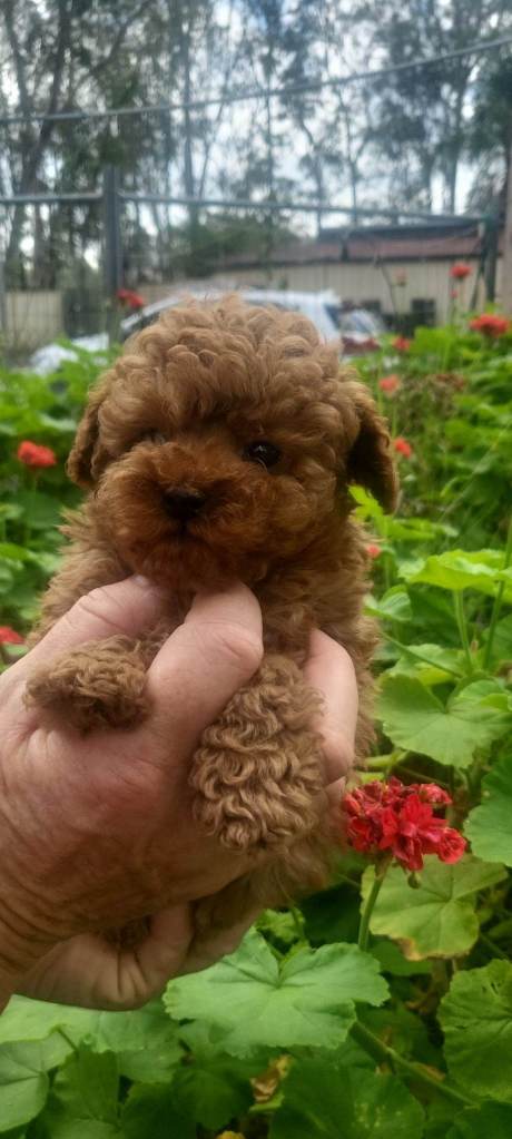 Week six More outside play bigger area again, introduce older house dogs, more toys, introduce other people including men, pups now have some of the back yard. Sleeping area moved to the door and fenced so pups can only go outside to toilet mums are now are away from the pups during the night. Back in during the day. Nails clipped faces clipped bottoms general to area clean. Rug put down on the grass and play with puppies on rug for a few hours most days. New people are introduced, men and women who are regulars and not have dogs at home.